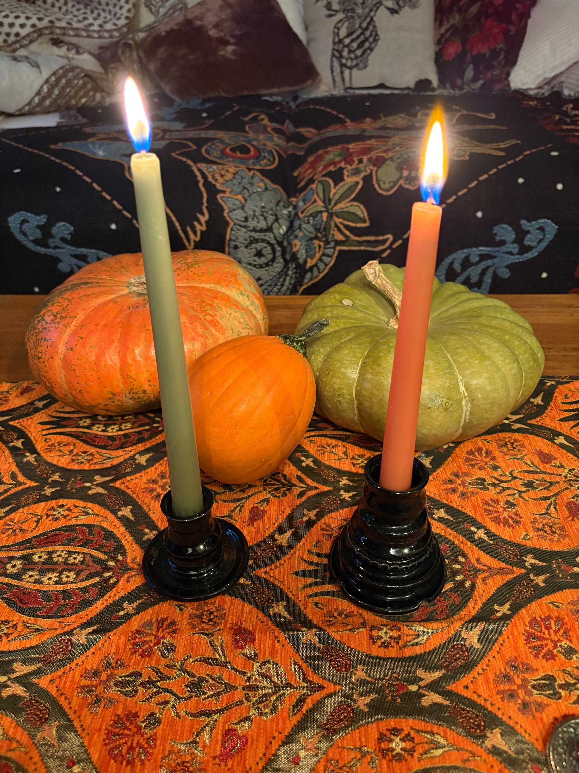 *Tip: if your candle stick is smaller than the opening, melt some wax into the holder to hold the candle straight and in place*
