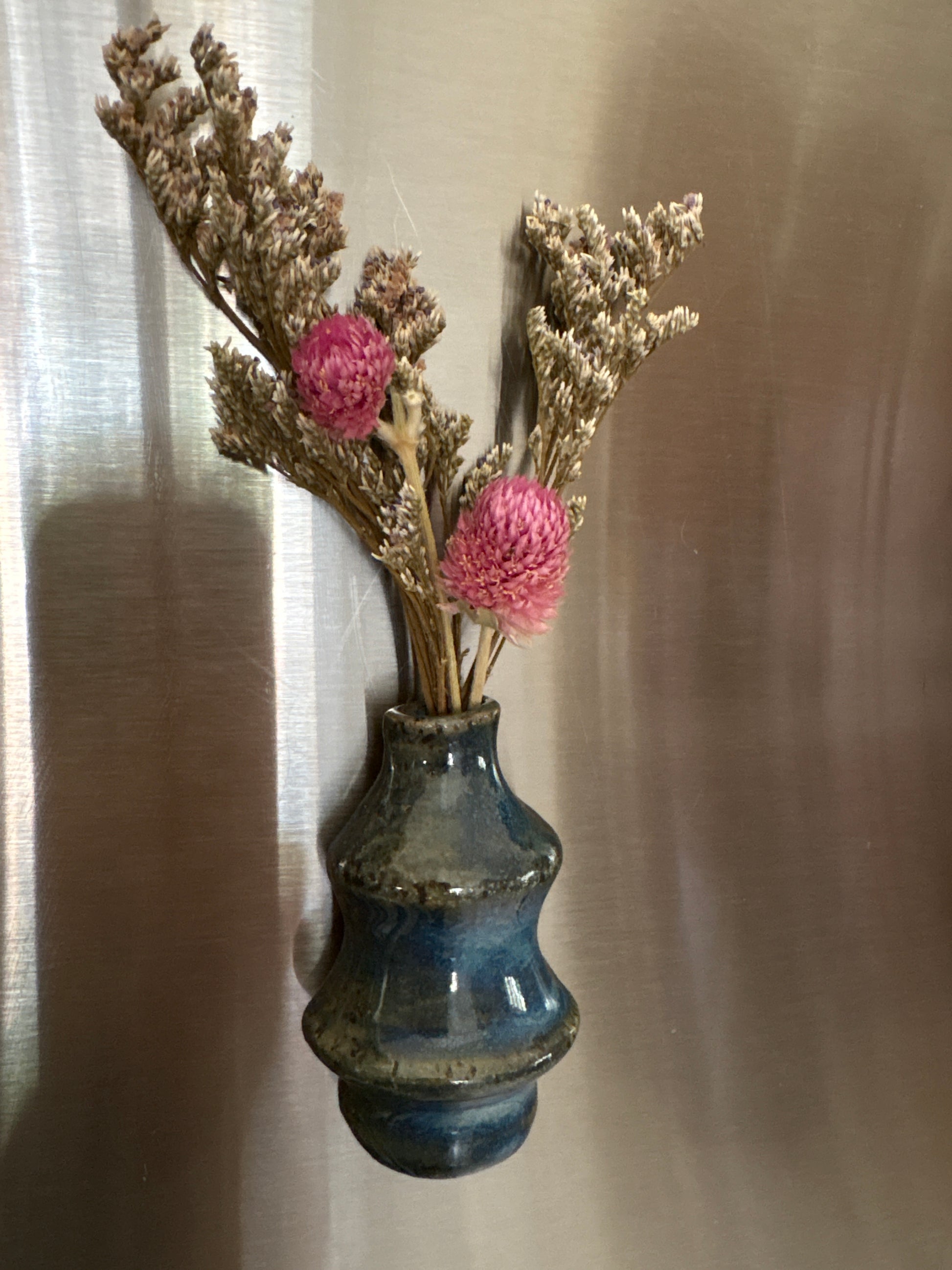 2.5 inch blue mini pot fridge magnet. Store fresh or dried flowers, air plants or love notes!