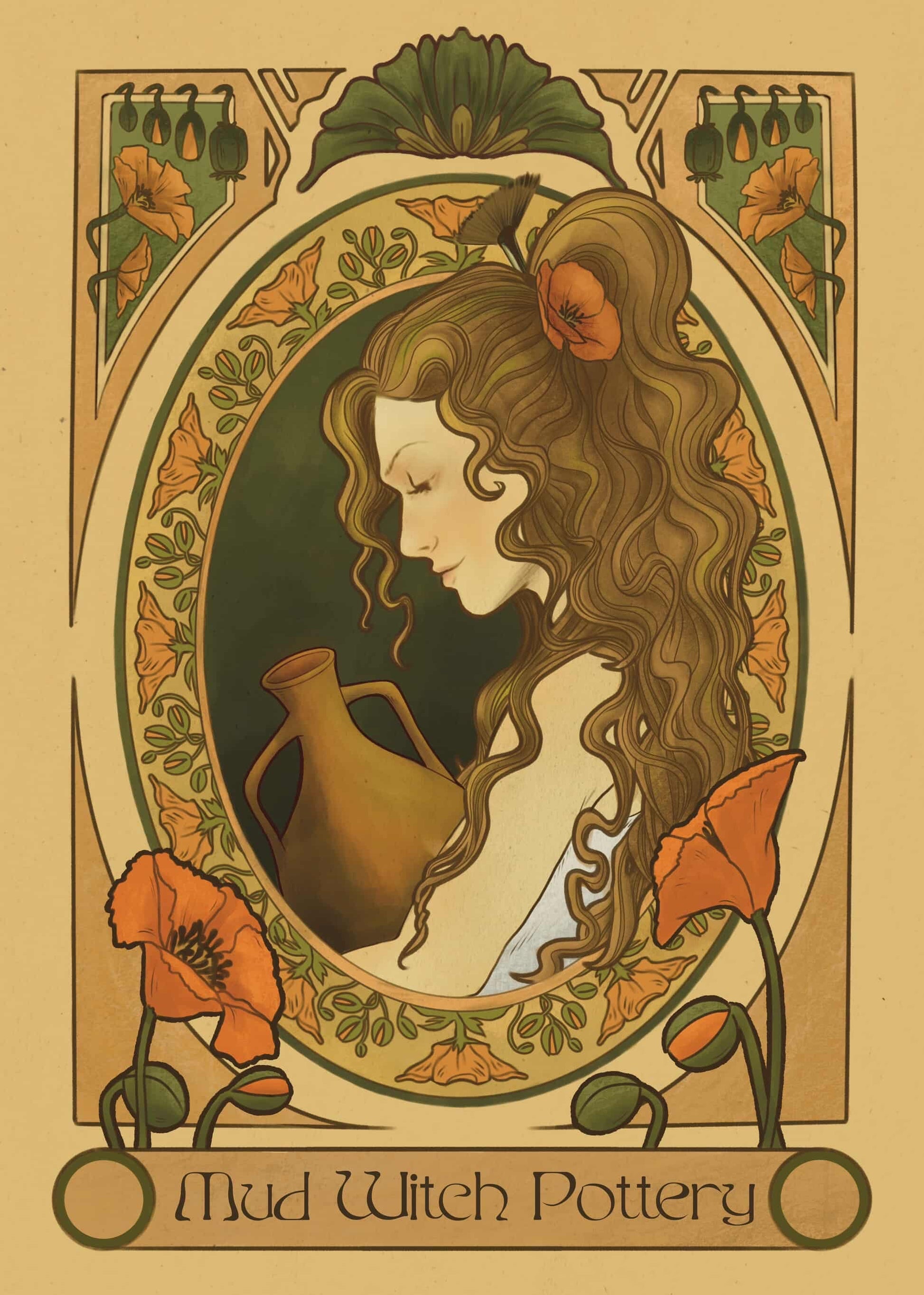 (3.5in. x 4.9in.) Mud Witch Pottery Logo matte vinyl sticker!